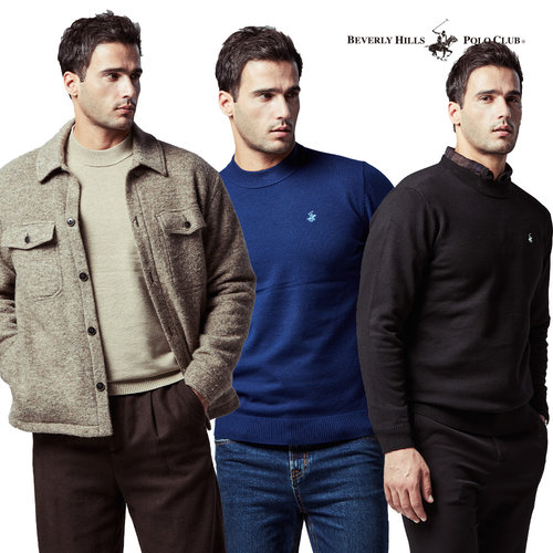 [매장동일 정품][비버리힐즈폴로클럽] 남성 클래식 WOOL 블렌드 솔리드 모크넥 니트 3종