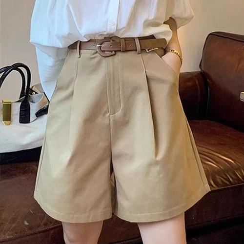 여성 반바지 봄 여름 캐주얼 하이 웨스트 a 라인 반바지 루즈 와이드 레그 시폰 반바지 세련된 레이디 블랙 화이트 정장 반바지