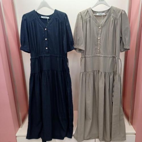 [라티움]Latium HC06 구김없는 앞반오픈 브이넥 반팔 캉캉 A라인 스트링 롱원피스 D2623op02K (49194231)