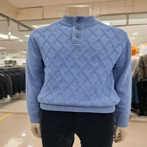 [바쏘옴므]바쏘옴므 블루울혼방 단추반폴라 다이아몬드 긴팔니트(WSZ4WN14ABU)