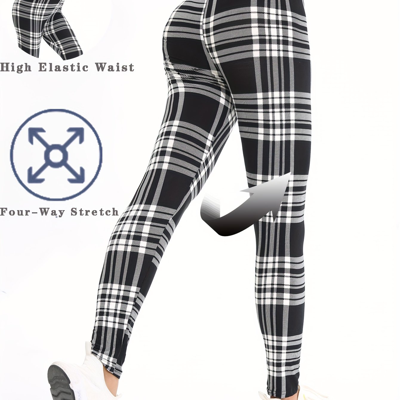 TEMU 가을/겨울용 캐주얼 블랙 앤 화이트 체크 무늬 프린트 요가 바지, 스타일리시하고 우아한 여성용 쉐이핑 고탄력 트라우저, 헬스장 운동, 러닝 및 야외 활동에 적합, 편안하고 통기성 좋은 태권도 3단 바지