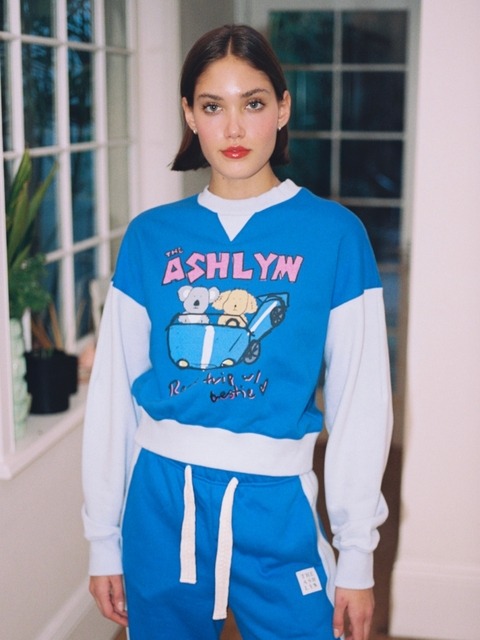 [더애쉴린] [볼륨 크롭 핏] 로드트립 스웻셔츠 블루