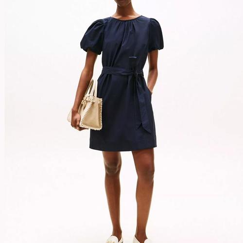 [해외배송] 타미 여성 퍼프 슬리브 벨티드 원피스 Navy
