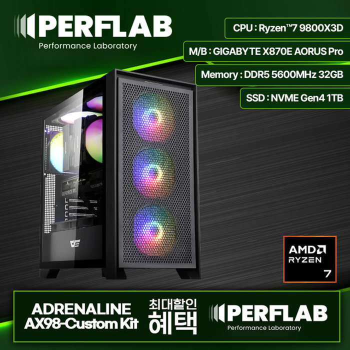 PERFLAB 라이젠7 9800X3D 32GB 1TB 게이밍 컴퓨터 AX98-Custom Kit 반본체 데스크탑 조립 PC