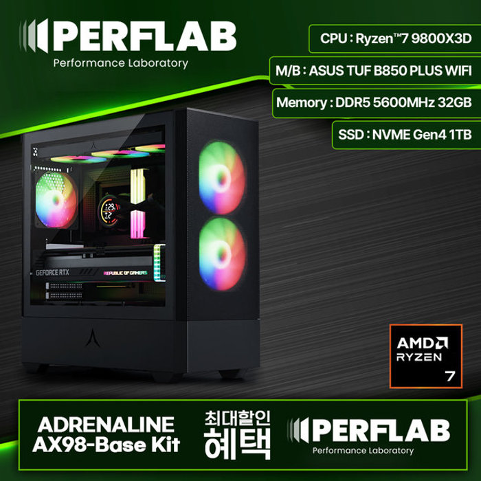 PERFLAB 라이젠7 9800X3D 32GB 1TB 게이밍 컴퓨터 AX98-Base Kit 반본체 데스크탑 조립 PC