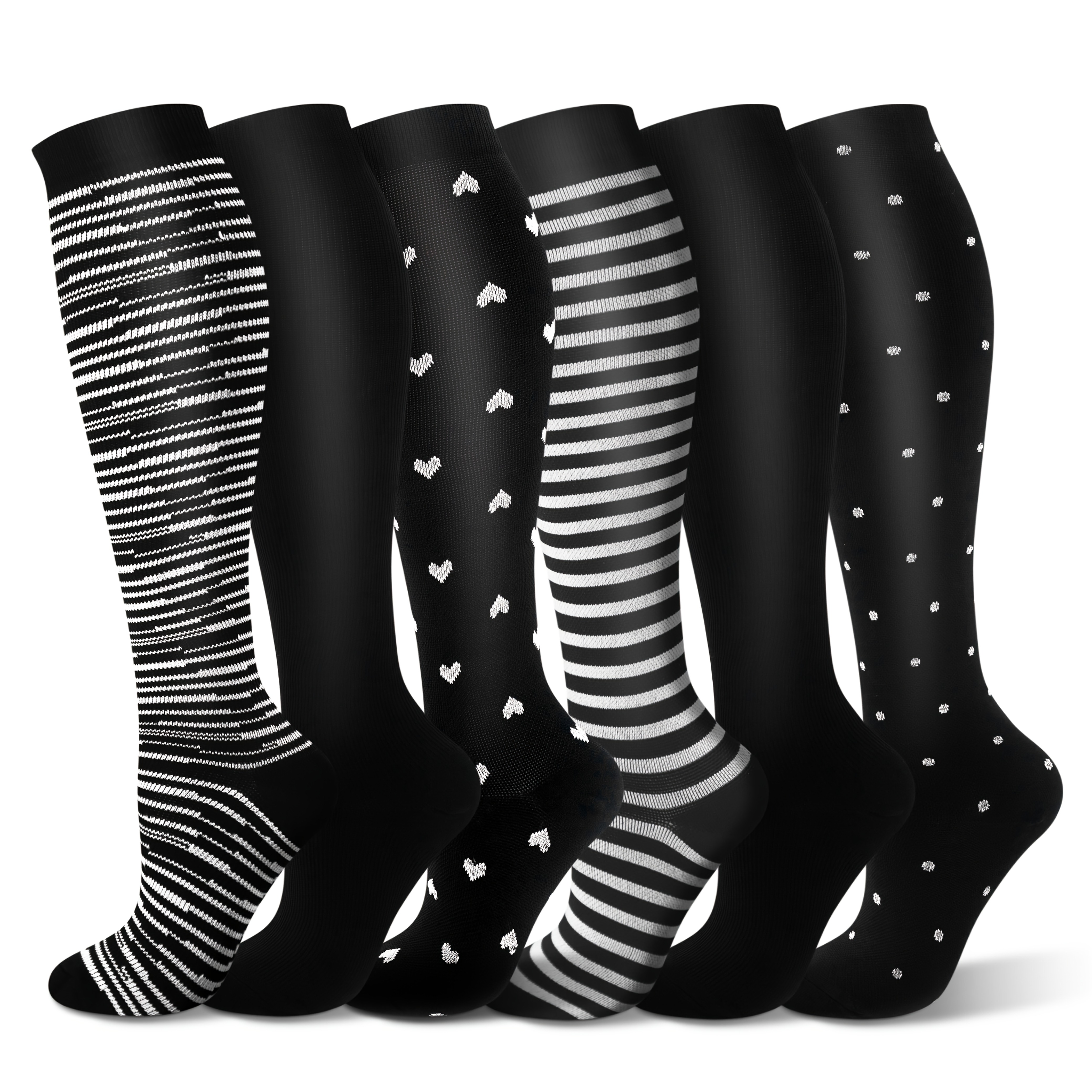 TEMU 6켤레 캐릭터 간호사 패턴 무릎 높이 압박 양말, 러닝 & 사이클링용, 15-25 MmHg 혈액 순환 지원, 폴리에스터 & 스판덱스 혼방, 사계절용 원단