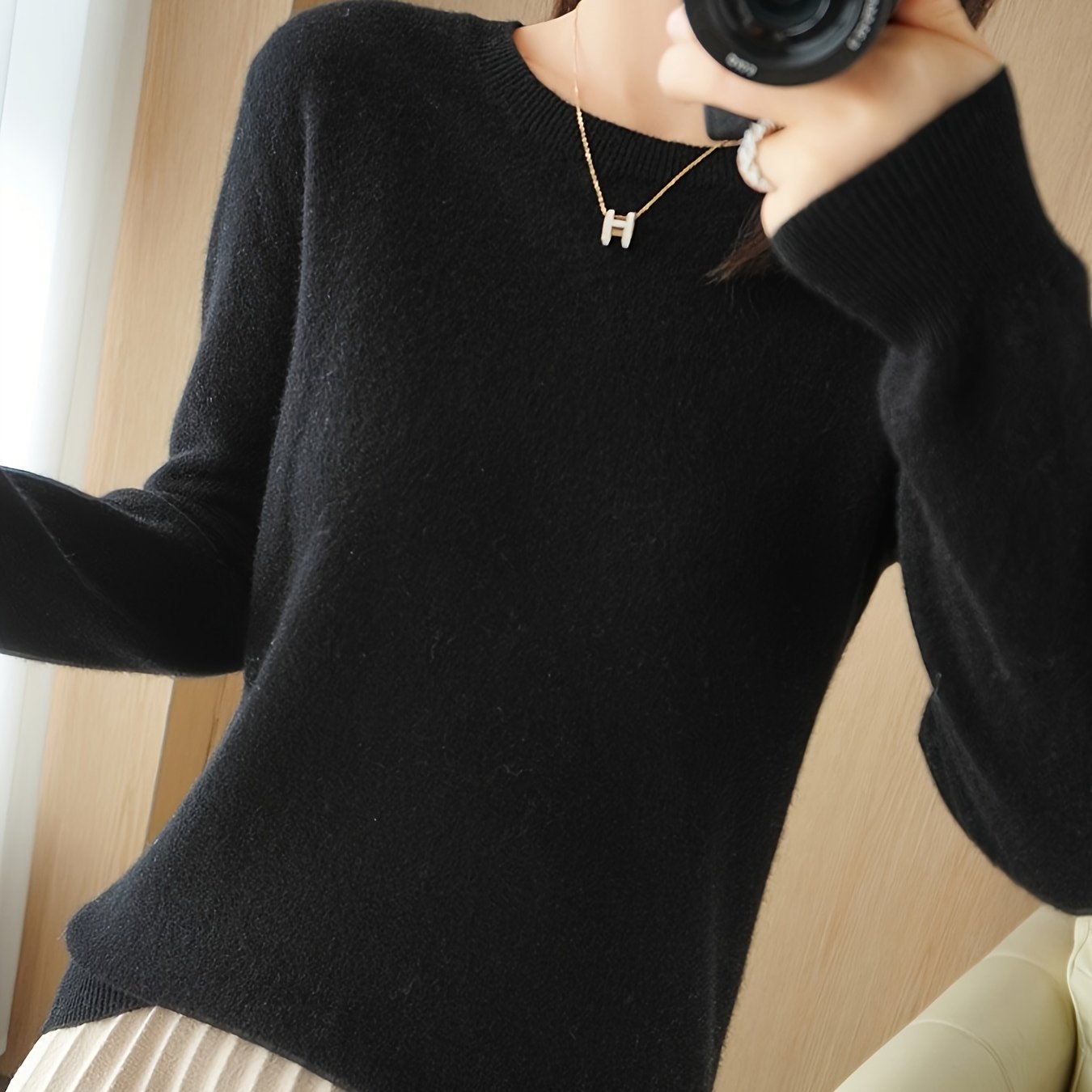 TEMU 가을/겨울 2025 신상 여성용 라운드넥 스웨터, 캐시미어 + 캐시미어, 플러시 캐시미어 스웨터, 캐시미어 느낌, 패셔너블, 다용도, 우아함, 따뜻함, 착용 준비 완료, 초소프트하고 섬세한 편안함, 구름 같은 촉감