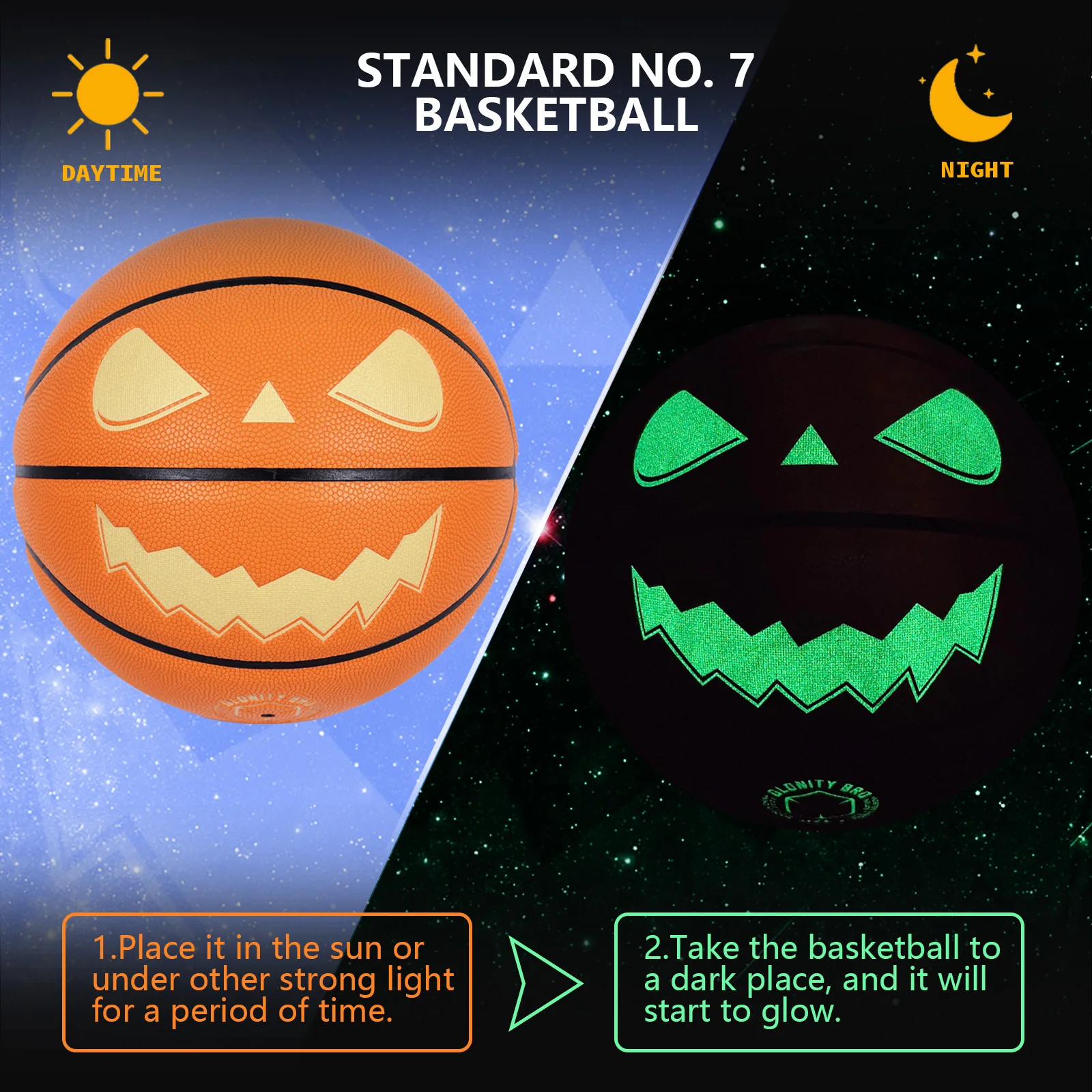 할로윈 잭오랜턴 농구공 표준 사이즈 7 실내외 남녀 공용 호박 발광 공 야간 사용