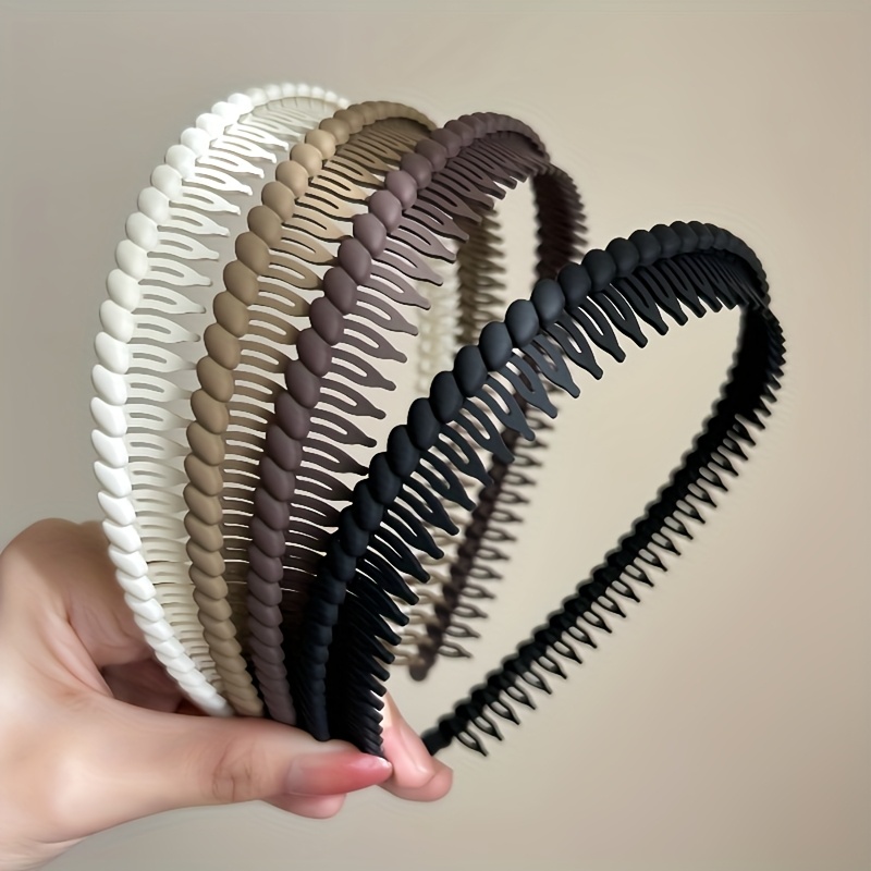 TEMU 스타일 매트 헤어밴드 4개 세트 (치아 포함) - 여성용 미끄럼 방지 헤어밴드, 텍스처된 치아 디자인으로 효과를 더해줌, 4가지 색상(화이트/베이지/브라운/블랙)으로 제공, 데일리 및 세안에 적합, 귀여운 헤어 액세서리.