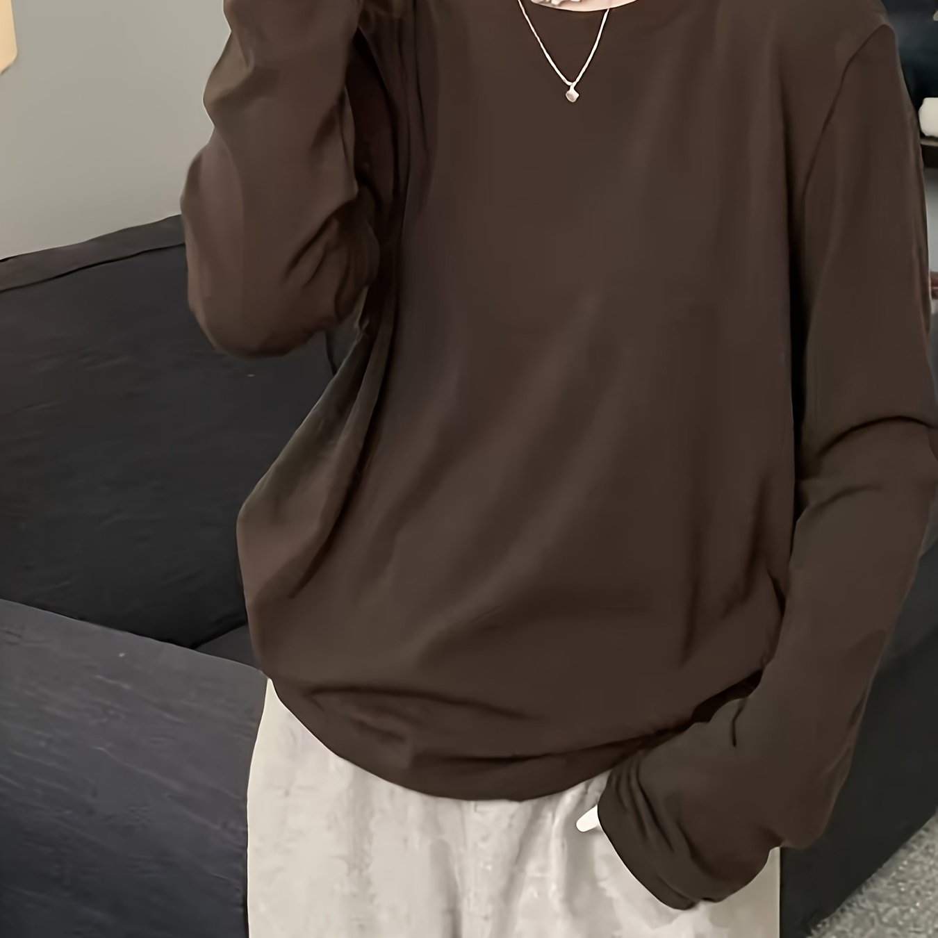 TEMU 봄/여름 신상 여성용 스타일리시 라운드넥 루즈핏 긴팔 티셔츠 베이스 레이어 탑