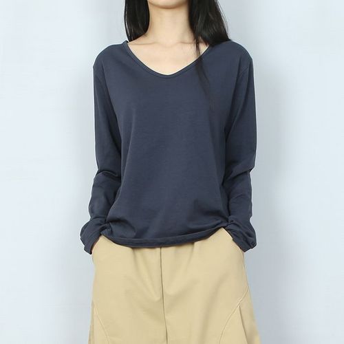 파라노말샵 / 4색 모달 기본핏 브이넥 긴팔 티셔츠 (파라노말샵)