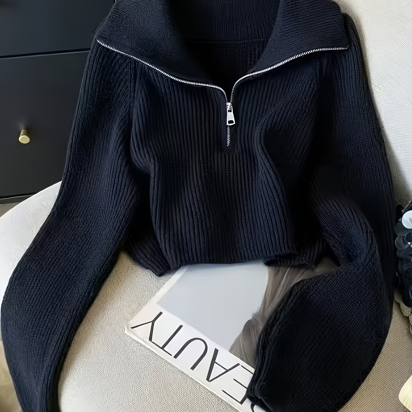 TEMU 여성용 긴팔 하이넥 하프집업 숏 풀오버 탑