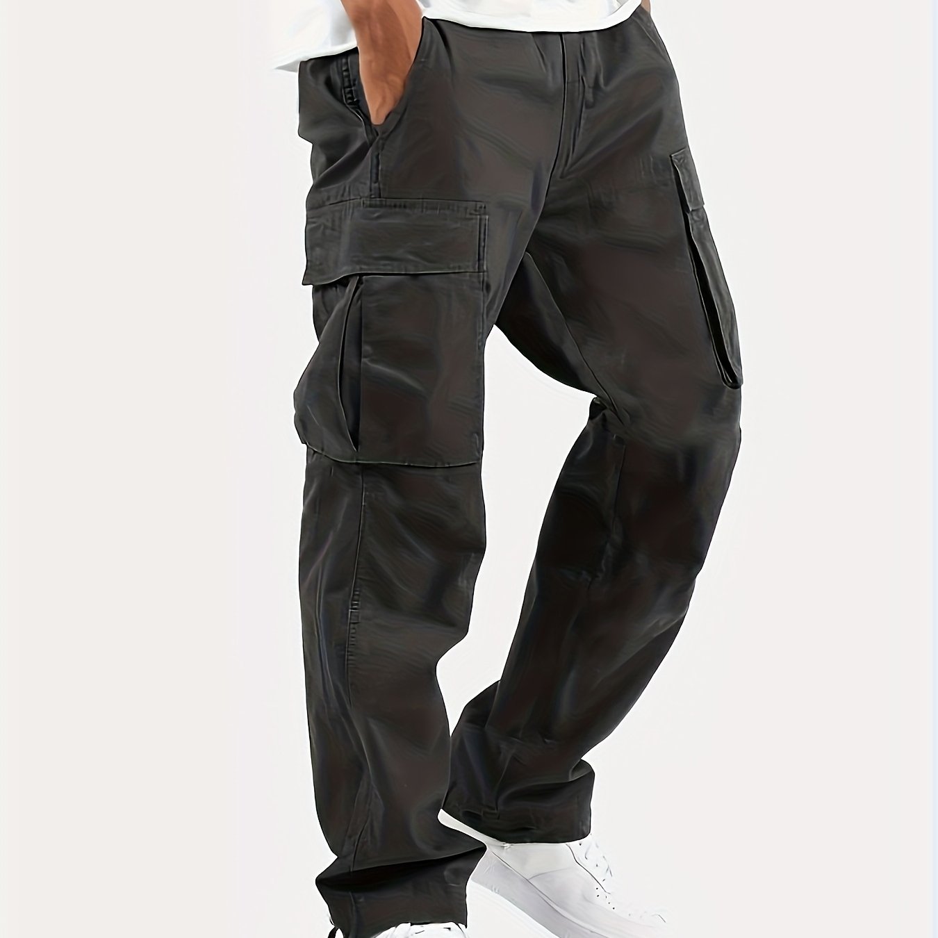 TEMU 트렌디한 단색 카고 바지, 남성용 멀티 플랩 포켓 바지, 루즈하고 캐주얼한 야외용 바지, 남성용 작업 바지 야외 테크웨어 힙합 스타일