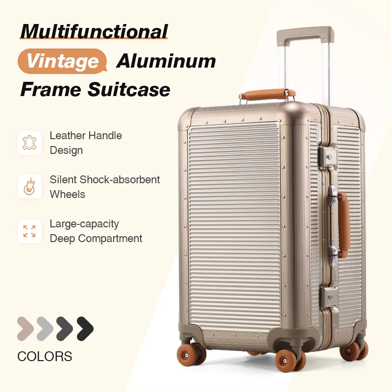 버니플라이 18/20인치 알루미늄 합금 마그네슘 모던 기내용 캐리어, 항공 승인 알루미늄 트롤리 휴대용 기내 사이즈 여행 가방