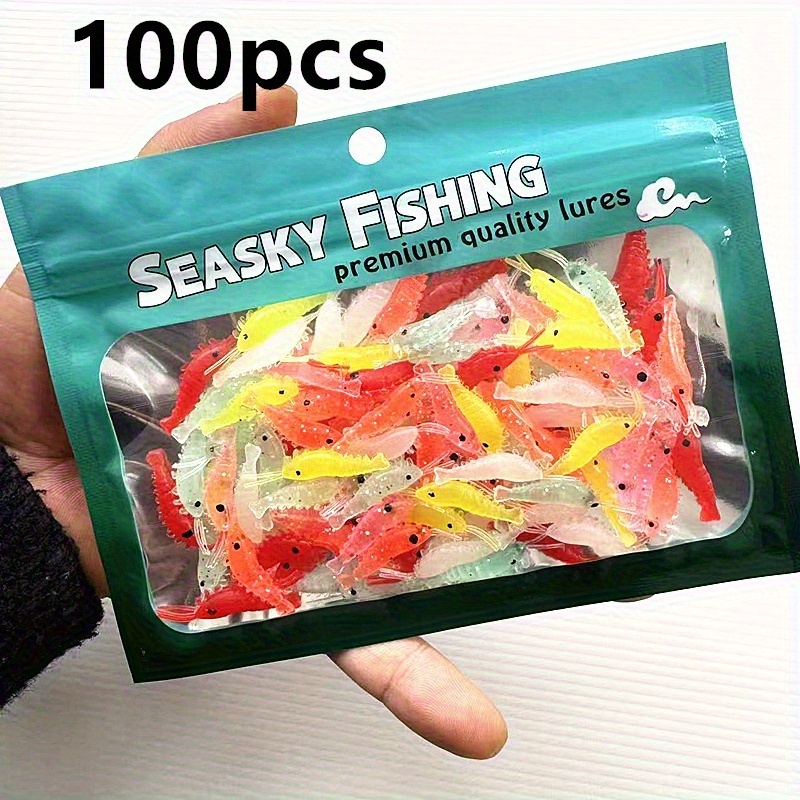 TEMU 겨울 낚시용 100개 세트 새우 루어 소프트 베이트 인조 미끼 바이오닉 베이트 시뮬레이션 새우 PVC 싱킹 새우 낚시 미끼, 겨울 낚시용 루어