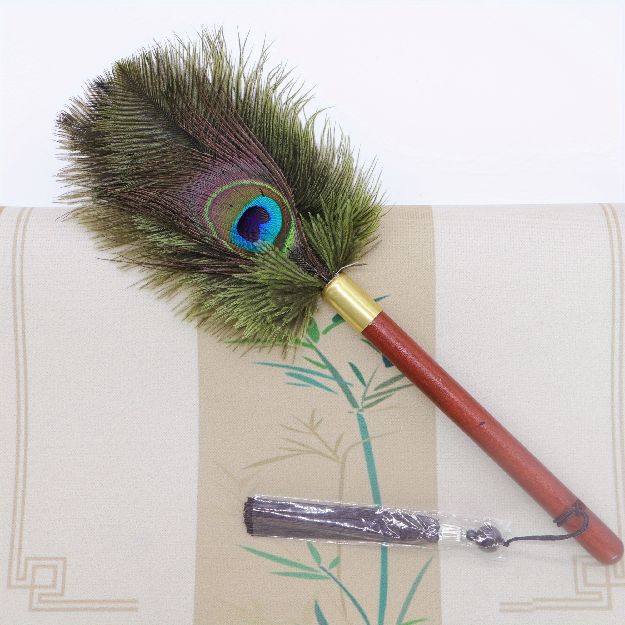TEMU 28-47cm 호두나무 손잡이 그린 & 블루 깃털 먼지떨이 - 가구, 침구, 커튼 및 바닥용 안티스태틱 멀티서피스 청소 도구 - 인체공학적 가정용 먼지솔 (배터리 불필요), 홈 클리닝용 장식 깃털 디자인, 우아한 청소 도구, 내구성 강화, 애완동물 주인용