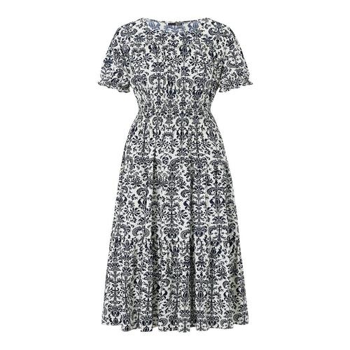 [비엔엑스]에스닉 패턴 스퀘어 넥 반팔 원피스 (BY2OP007L0)