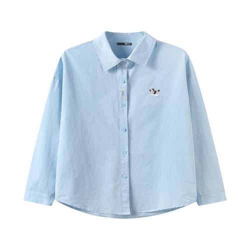 [비엔엑스]데일리 심플 자수 루즈핏 긴팔 셔츠 (BY1BL017L0)