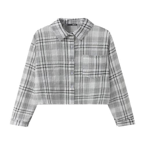 [비엔엑스]타탄 체크 크롭 긴팔 셔츠 (BY1BL024L0)