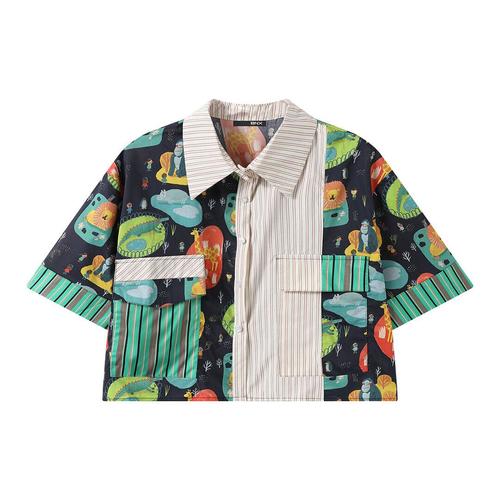 [비엔엑스]컬러풀 믹스 패턴 크롭 빈티지 반팔 셔츠 (BY2BL001L0)