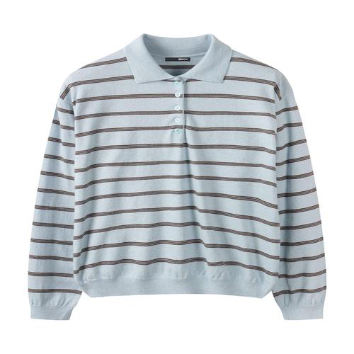 [비엔엑스]스트라이프 반 버튼 카라 배색 니트 (BY1KP001L0)