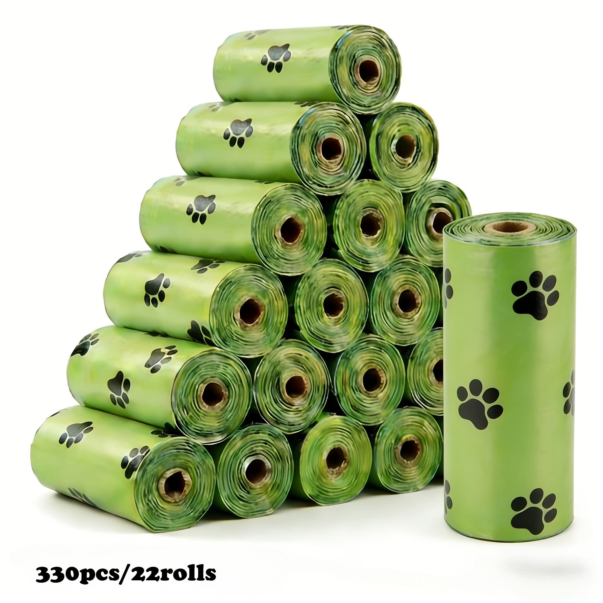 TEMU 330개/22롤 두꺼운 누수 방지 반려동물 쓰레기 봉투, 세척이 쉬운 폴리에틸렌 소재, 사랑스러운 발자국 프린트 디자인, 강아지와 새끼 고양이용 - 휴지통 디스펜서와 호환, 내구성 있는 강아지 고양이 반려동물 쓰레기봉투