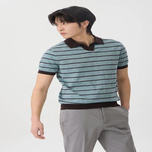 [브렌우드]코오롱 브렌우드 인디고 스트라이프 폴로넥 티셔츠 BRTAM26621BUX_SC