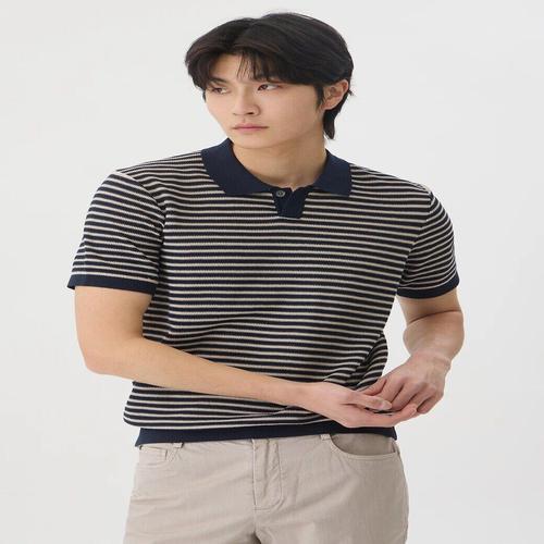 [브렌우드]코오롱 브렌우드 와플 조직 스트라이프 폴로넥 티셔츠 BRTAM26521BEX_SC