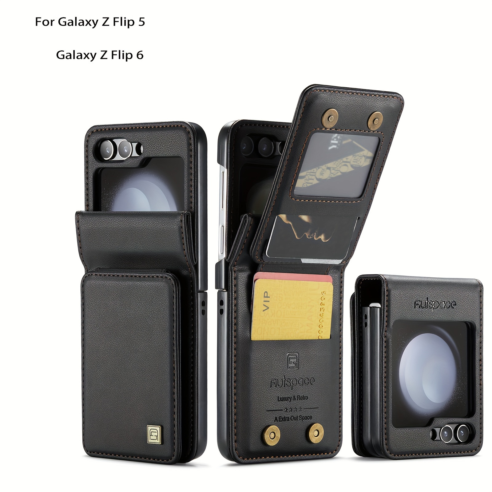 TEMU 심플하고 패셔너블한 휴대폰 케이스, 삼성 갤럭시 Z 플립 5 RFID 차단 기능 Z 플립 6 카드 삽입 가능 스트레처블 플립폰 보호 커버 더블 자석 버클 잠금 다기능 카드 삽입 휴대폰 케이스, 플립 폰 액세서리, 디자인,고품질 소재,정밀 맞춤,다기능 액세서리,기술 애호가,삼성 사용자