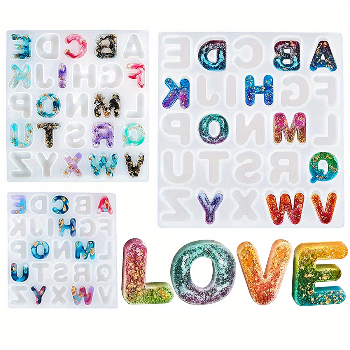 TEMU 실리콘 글자 레진 몰드, 3가지 크기의 키체인 몰드, 에폭시 주조용 실리콘 몰드, DIY 키체인 펜던트 귀걸이 홈 데코레이션을 위한 에폭시 몰드