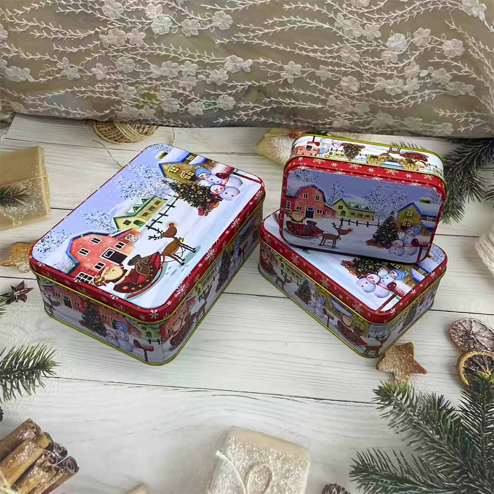 TEMU 3개 크리스마스 선물 상자 - 우아한 메탈릭 주얼리 & 기념품 보관 상자, 눈이 내리는 마을 풍경, 공예품, 크리스마스 카드, 키체인용 - 장식 & 정리함 (3개), 크리스마스 상자, 축제 디자인, 장식 뚜껑