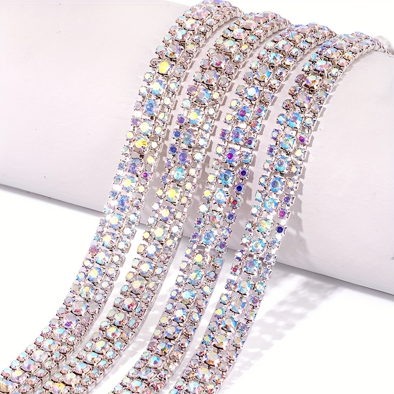 TEMU 듀 엑스트라 롱 90cm 체인 스트립 - AB 이펙트, 3줄 반짝이 (레드, 블루, 골든, 퍼플, 옐로우) - 재봉틀, DIY 공예, 의류, 가방, 신발, 파티 장식용 - 고급 패브릭 , 옷장식, 무봉제 라인스톤 애플리케이션, 구두 액세서리, 트림, 고품질 스톤, 공예 애호가를 위한 장식 테이프