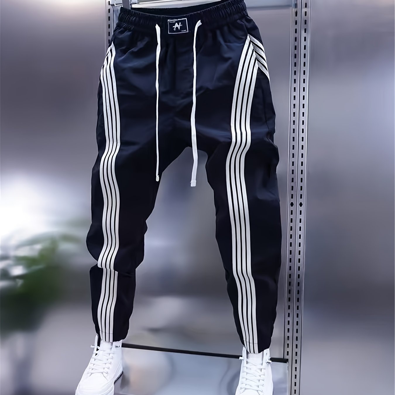 TEMU 2025 유럽 및 미국 하이스트리트 빈티지 커프스 남성용 캐주얼 팬츠, Ins 스타일 스트리트웨어 브랜드 활용도 높은 슬림핏 애슬레틱 스키니 팬츠, 미국 힙합 스트리트댄스 속건성 통기성 낫다리 팬츠, 크로스보더