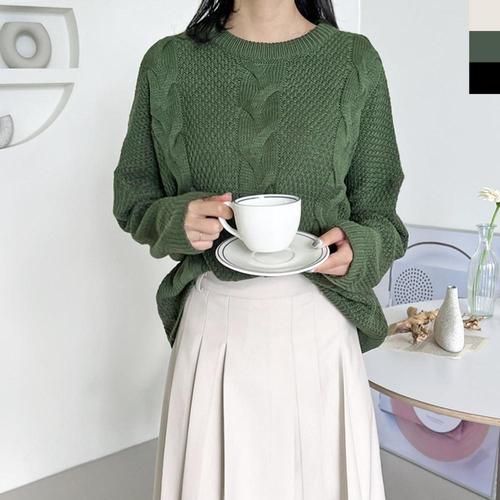 [오너클랜]인기상품 CAT 1040 여자크루넥 꽈배기맨투맨니트 티숙 흐집업 [WFHOXC6_260319]