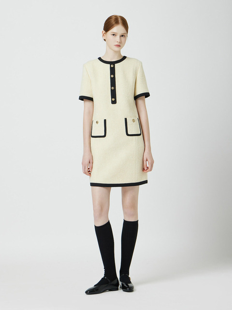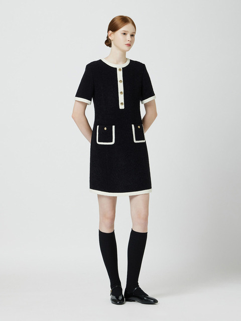 [씨씨콜렉트] 부클 배색 트리밍 원피스 BK_C254MSE031