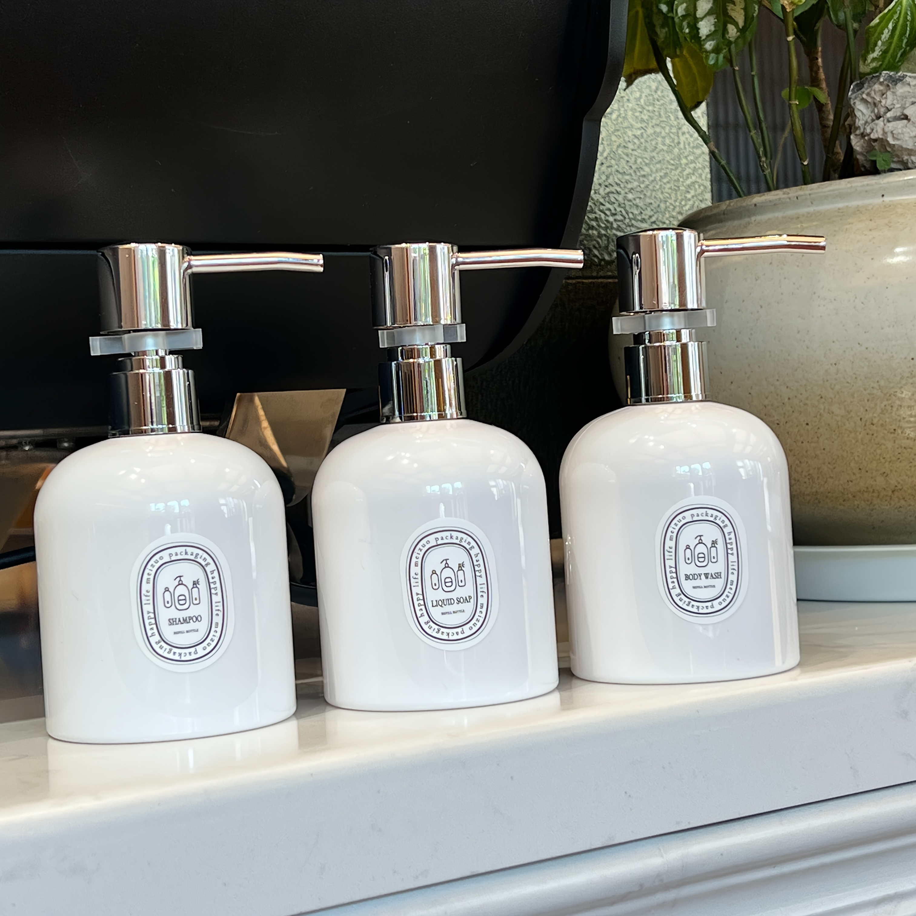 TEMU 인터넷 셀럽 2025 핫 아이템 화이트 리필 가능 병, 호텔 미용실 및 가정 욕실에 적합, 손세정제, 샴푸, 샤워 젤, 컨디셔너, 에센셜 오일, 목욕 오일에 분할 가능