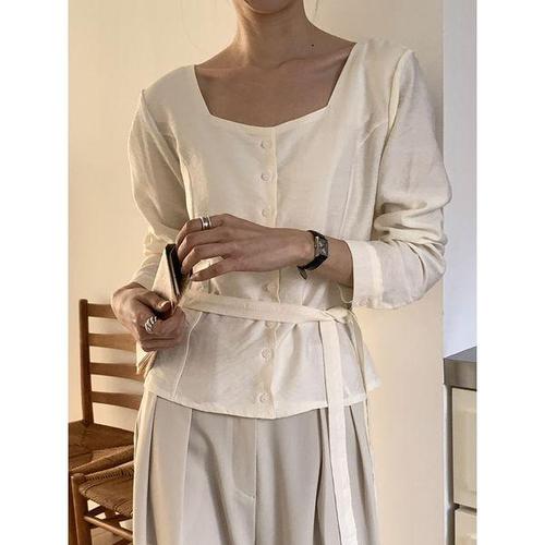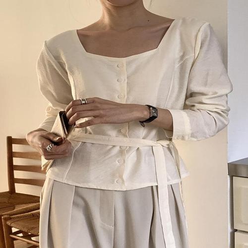 [하젤]치코 스퀘어넥 레이온 타이 블라우스_S4486