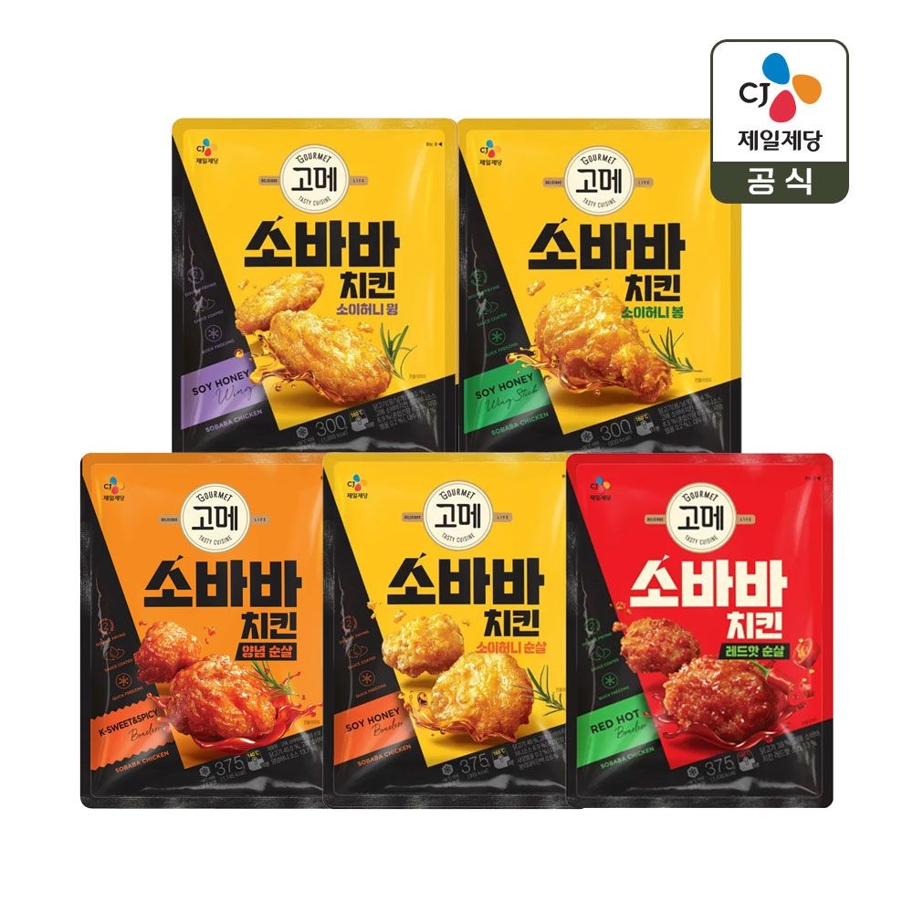 CJ 고메 소바바치킨 소이허니 3종 각 1개 순살 375g 봉 300g 윙 300g 치킨