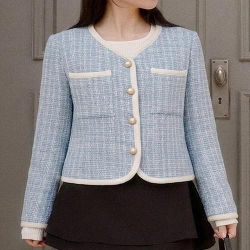 [위시드]배색 라인 진주 버튼 트위드 자켓 (WIDAJK005)