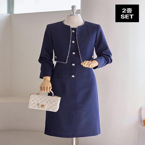 [커스텀에이블][55-77]트위드 라인 크롭 자켓 원피스 2세트_T2603SE009A