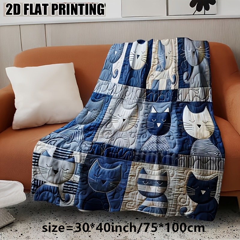 TEMU 2D 플랫 퀼트 플란넬 담요, 빈티지 데님 체크 장식 스로우, 추상 고양이 패턴, 침대와 소파에 적합한 부드러운 플란넬, 크리스마스와 생일 선물로 이상적, 모든 방을 위한 아늑한 홈 데코, 2D 플랫