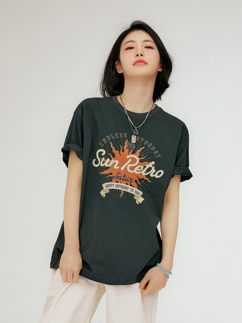 [세터] 뉴 썬 레트로 그래픽 반팔 티셔츠_차콜
