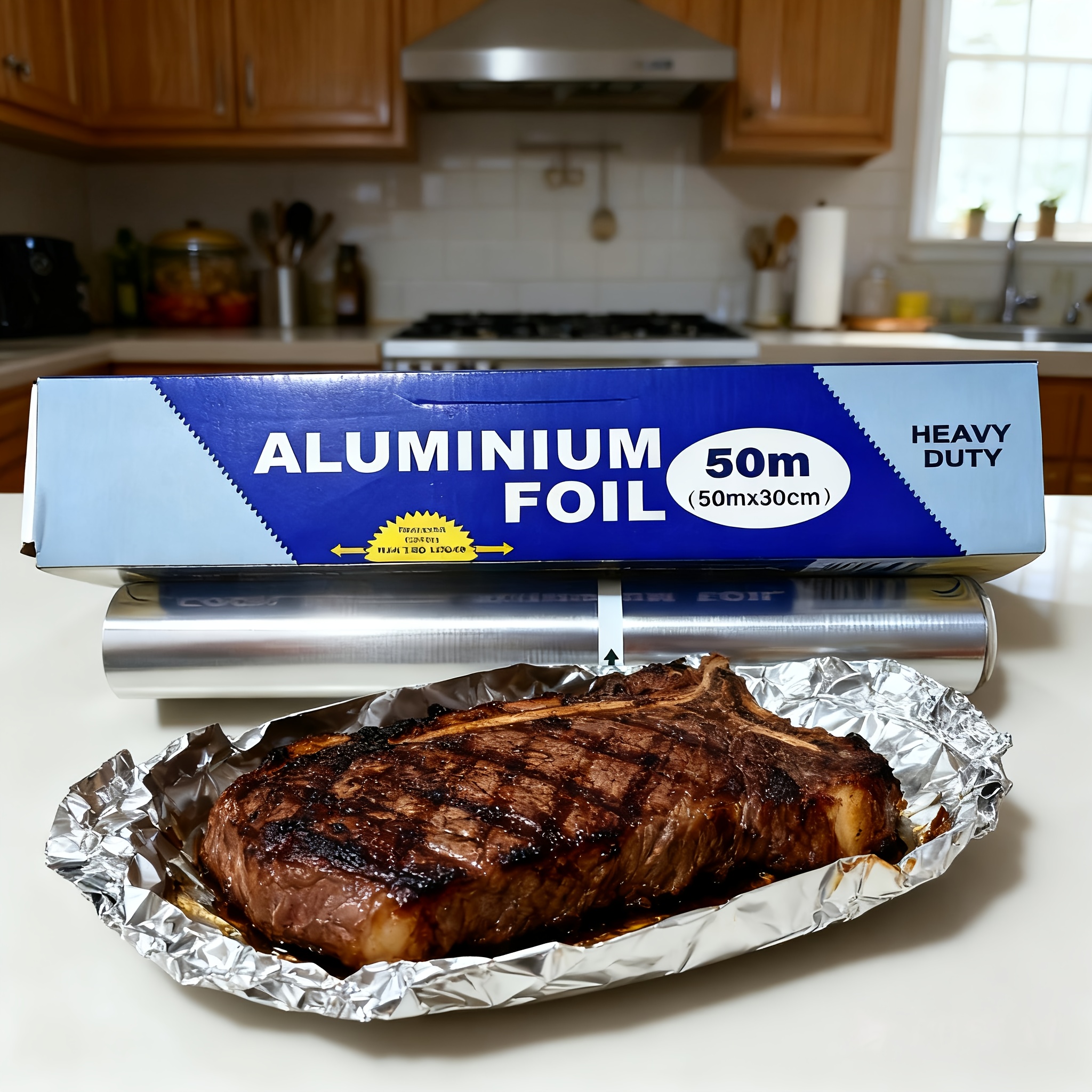 TEMU 65/50미터 식품 등급 주석 호일, 65미터는 45cm 폭, 매우 길고 내구성이 뛰어나 베이킹, 바베큐, 주방 사용에 적합합니다. 가정용 알루미늄 호일 롤, 50미터 및 30미터는 30cm 폭입니다. 다양한 시나리오에 적합합니다.