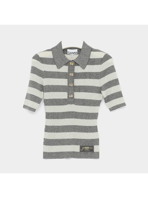 [가니] 가니 패치로고 스트라이프 카라 여성 PK니트 K2482 135