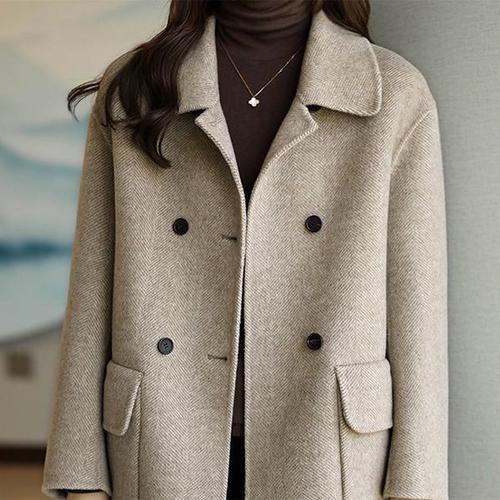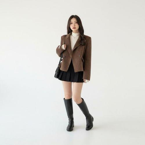 [신상오픈런]여성 클래식 빅카라 더블 버튼 세미 크롭 자켓