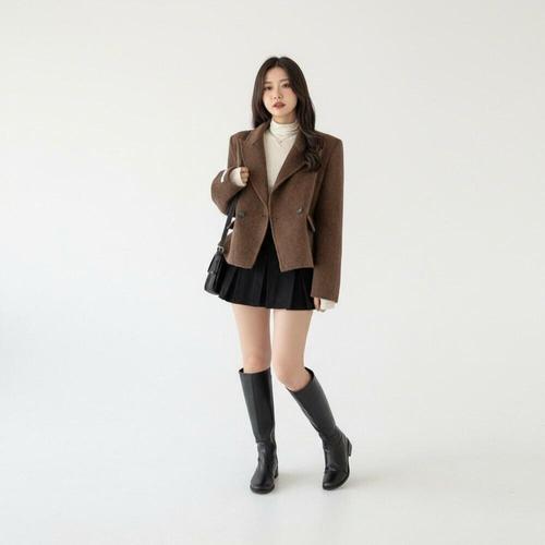 [신상오픈런]여성 클래식 더블버튼 빅카라 세미크롭 자켓