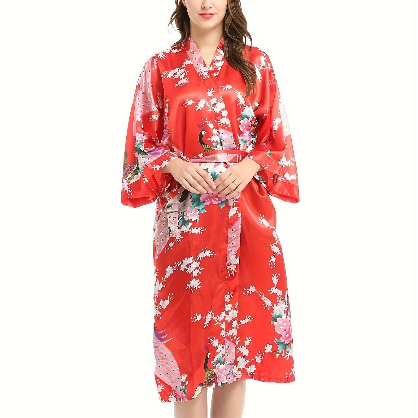 TEMU 여성 네글리지 기모노 로브 해외 무역 스타일 봉숭아 카디건 로브 여름 섹시 롱 목욕 가운