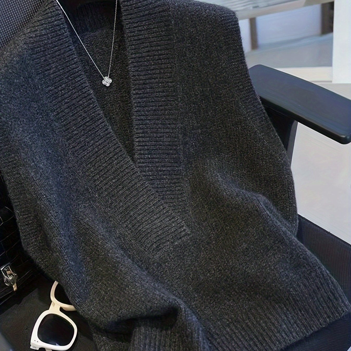TEMU 여성용 빅비즈넥 조끼, 루즈핏 얇은 단색 속옷 겉옷 스웨터 조끼, 해외 스타일 가을 겨울 신상 민소매 재킷