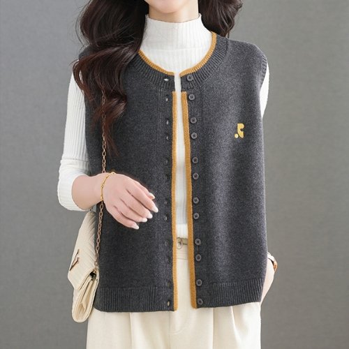 메탈 버튼 니트 베스트 스웨터 O넥 와이드 스트랩 웨이스트코트 시크 탑 여성 패션