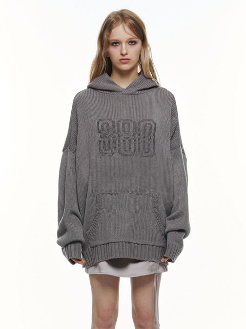 [쓰리투에이티] 니트 후드티 (그레이)